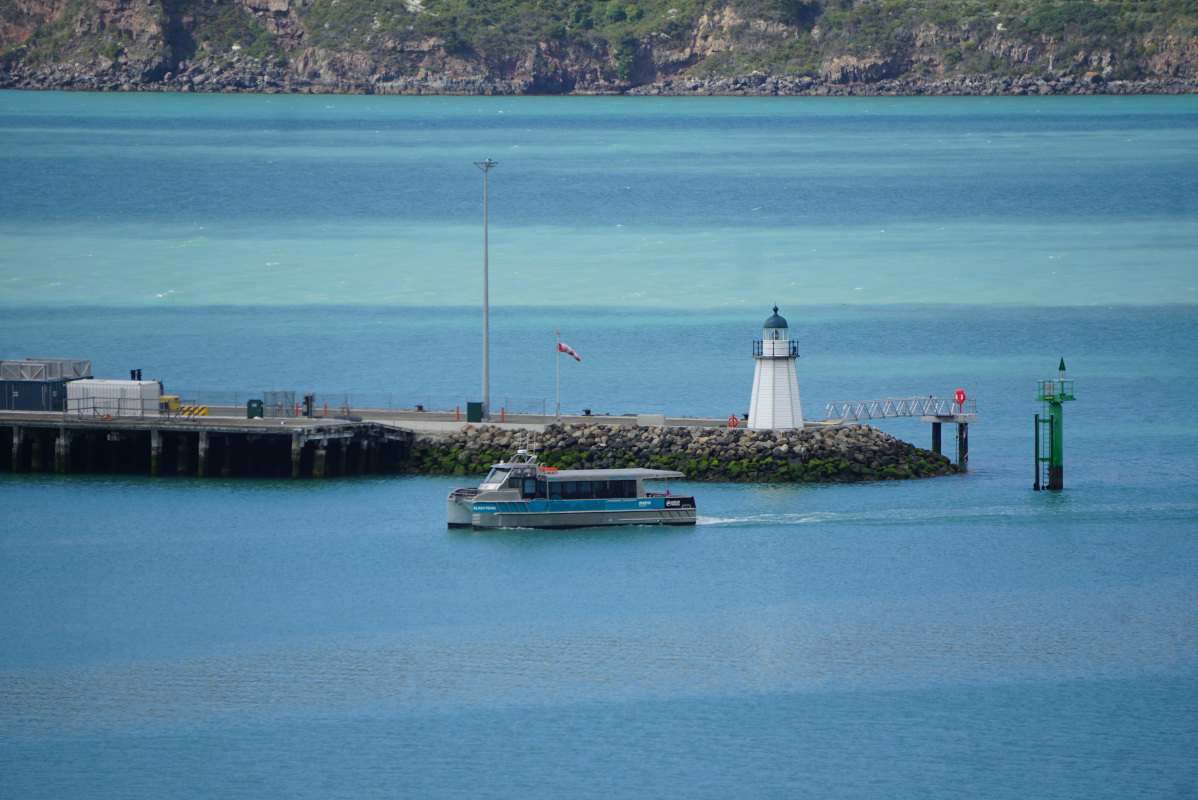 As the Black Cat approaches the Akaroa Wharf it turns port-side to.