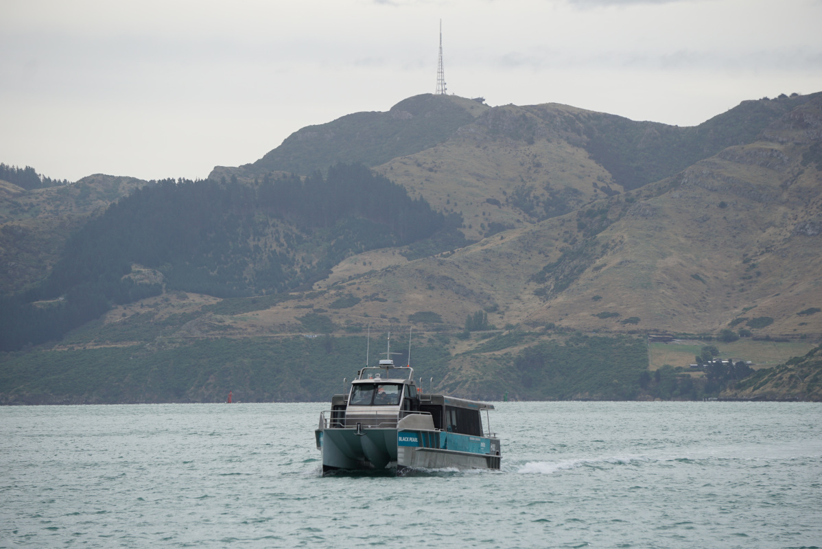 On one of its many trips Black Pearl crosses Lyttelton Harbour.